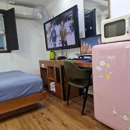Controle de temperatura, juntamente com máquinas de café/chá, proporcionam conveniência no sala do Yeon Stay de Seul. Além disso, estes quartos incluem chaleira elétrica e refrigerador, bem como casa de banho separada e chuveiro.